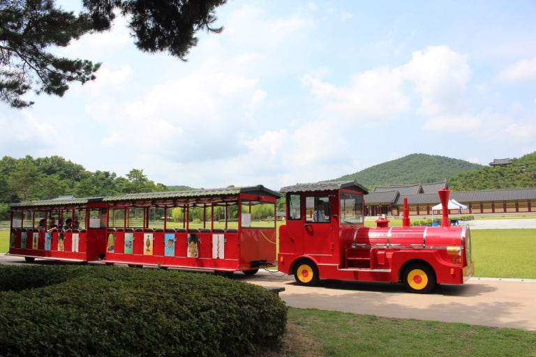 At the Cultural Land, visitors can take a train ride with a guide. The tour takes about 20 minutes.